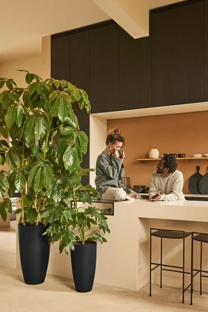 Deze prachtige design bloempot is een ware eyecatcher in jouw interieur, tuin of terras. Door de zachte ronde vormen komt deze bloempot in vrijwel elk interieur perfect tot zijn recht. Combineer deze pot met kleine tot middelgrote planten en bomen. Dankzij de verhoogde bodem hoef je niet de gehele pot te vullen met aarde. Wil je toch gegarandeerde stabiliteit? Vul dan de pot aan de onderzijde met zand. Deze ruimte kan worden afgesloten met de dop zodat het zand in de pot blijft. Als je deze bloempot buiten wilt gebruiken, vergeet dan niet aan de binnenkant van de pot de markering op het verhoogde gedeelte door te boren. Zo kan het overtollige water weg en voorkom je wortelrot. Houd er rekening mee dat je jouw pot niet meer binnen kan plaatsen nadat je erin hebt geboord. Deze pot is verkrijgbaar in diverse maten en kleuren, zodat er altijd een variant is die perfect aansluit bij jouw interieur of tuin. Of je nu kiest voor een enkele pot als eyecatcher, of juist een speels effect wilt creëren door verschillende maten en kleuren te mixen en matchen, de mogelijkheden zijn eindeloos. Deze pot kan wel tegen een vuiltje of stootje. De kunststof waarmee de pot is gemaakt, is van hoge kwaliteit. Daardoor kan hij ook in de volle zon staan, zonder dat de kleuren vervagen. Deze pot kan zelfs tot -40 graden buiten blijven staan en is makkelijk te verplaatsen en schoon te maken.