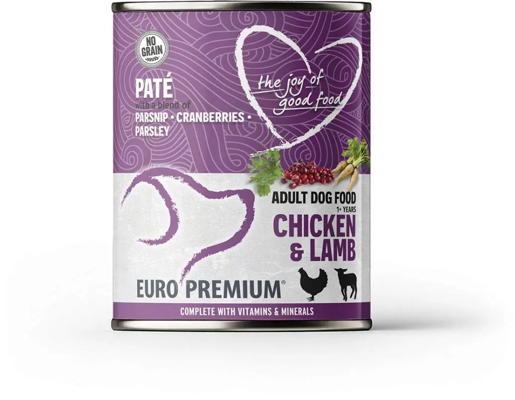 - EURO PREMIUM ADULT CHICKEN & LAMB is een heerlijke paté voor honden met veel vlees, groenten, fruit en kruiden.