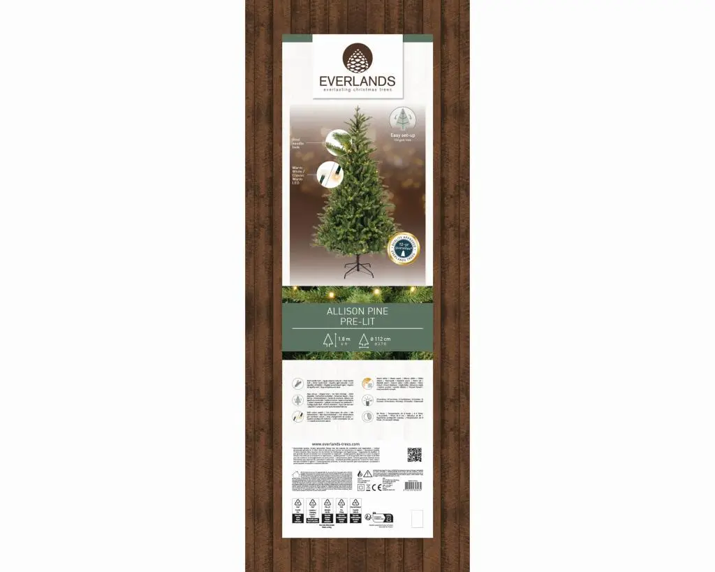 Op zoek naar een mooie kunstkerstboom? Dan is de Everlands Allison fir verlichte kunstkerstboom groen 180cm met 320 lampjes wat voor jou voor een ideale kerst. Deze kunstkerstboom heeft een hoogte van 1,8 meter en een diameter van 1,12 meter. De boom is groen van kleur en zorgt met zijn 320 lampjes voor een sfeervolle verlichting in huis tijdens de feestdagen.