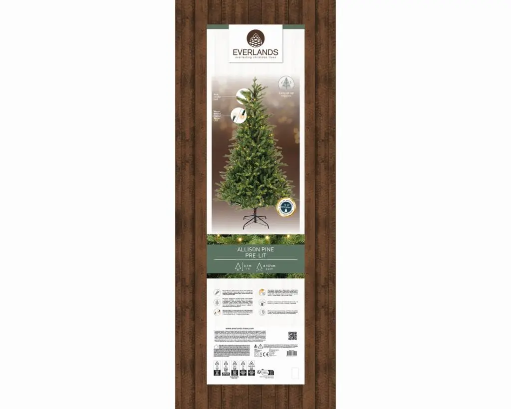 De Everlands Allison fir verlichte kunstkerstboom is uitgevoerd in een klassieke groene kleur en zal prachtig staan in elke kerstsetting. Haal de kerstsfeer in huis met deze schitterende kunstkerstboom en geniet van een feestelijke kerstperiode!