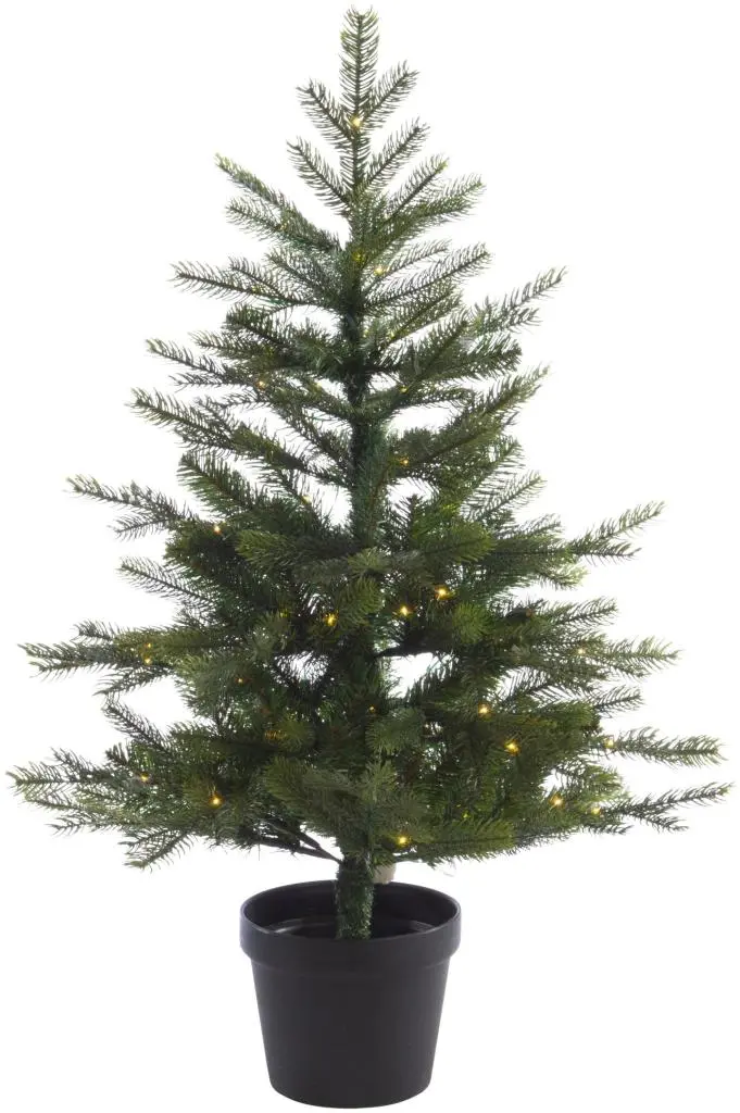 Op zoek naar een mooie kunstkerstboom? Dan is deze Everlands Grandis verlichte kunstkerstboom op batterijen in de kleur groen van 90 cm hoog met 80 lampjes wat voor jou voor een ideale kerst.