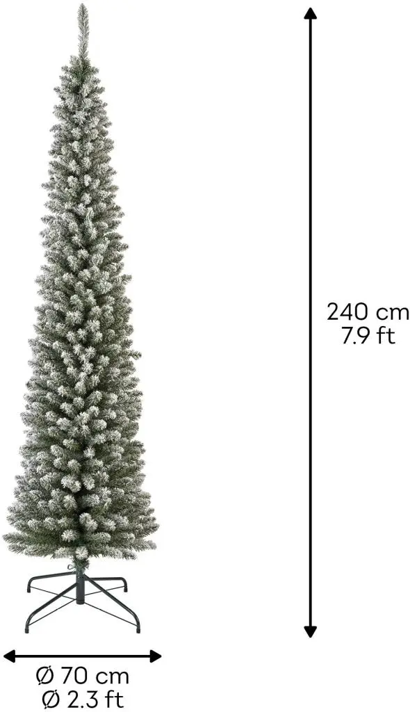 Op zoek naar een mooie kunstkerstboom? Dan is deze kunstkerstboom van Everlands wat voor jou voor een ideale kerst. De Everlands Pencil pine grote kunstkerstboom is 240 cm hoog en is besneeuwd voor een extra feestelijke uitstraling. De boom heeft een realistische uitstraling en is gemaakt van hoogwaardig PVC materiaal.