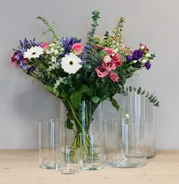 Deze moderne Floran vaas cilinder glas 30x35 cm is gemaakt van glas. De vaas heeft een diameter van 30 cm en een hoogte van 35 cm. Combineer verschillende modellen en maten voor een speels effect.