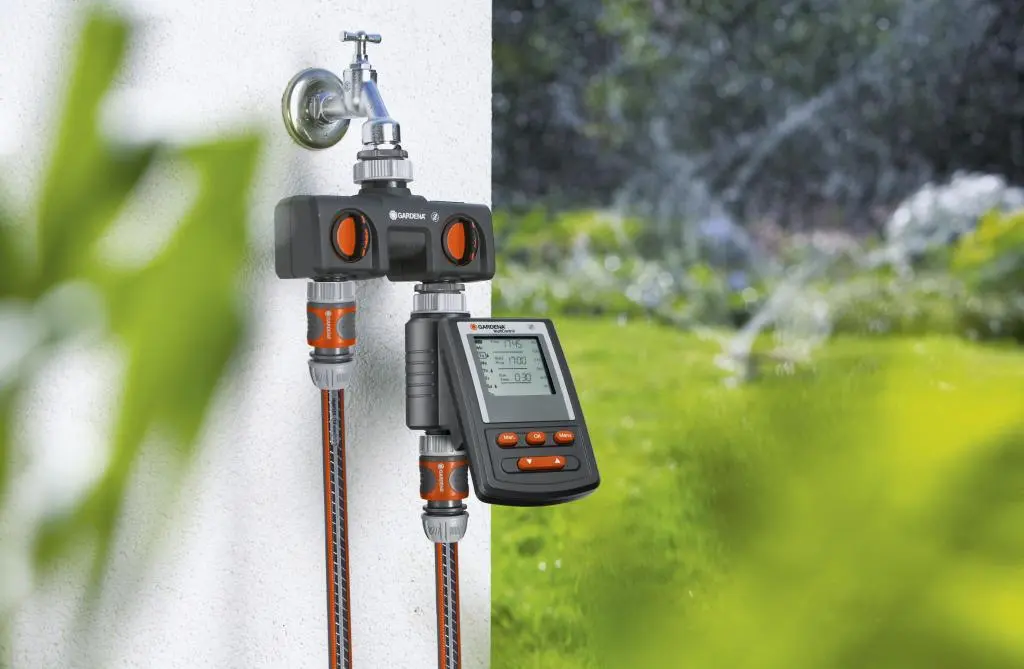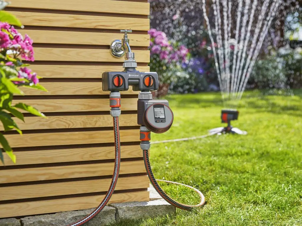 Op de verdeler kunnen twee GARDENA besproeiingscomputers of watertimers worden aangesloten. Dit biedt extra mogelijkheden voor het regelen van de watertoevoer per aansluiting.