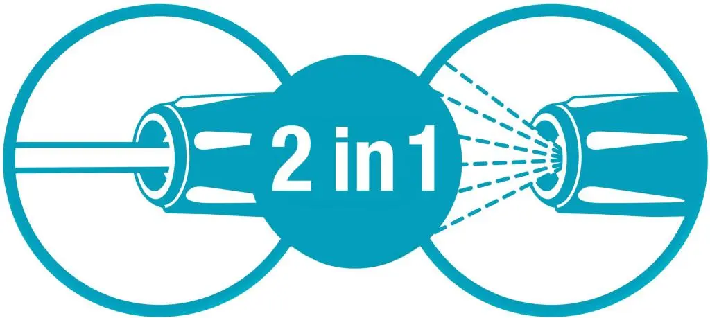 - Twee sproeistanden – geschikt voor bewatering en reiniging