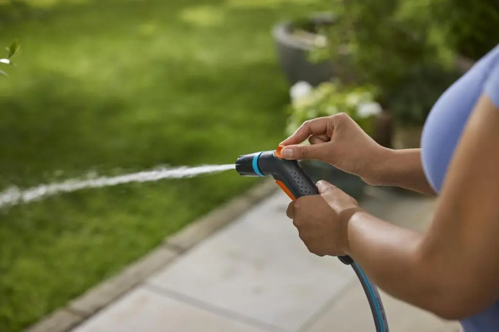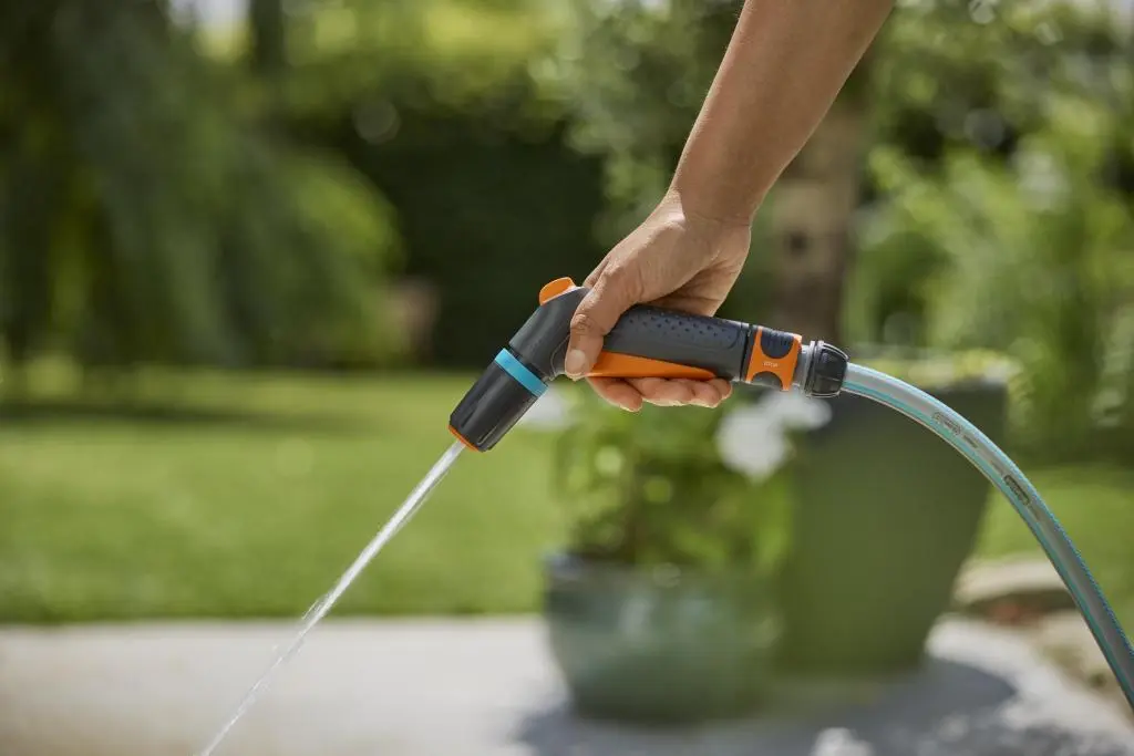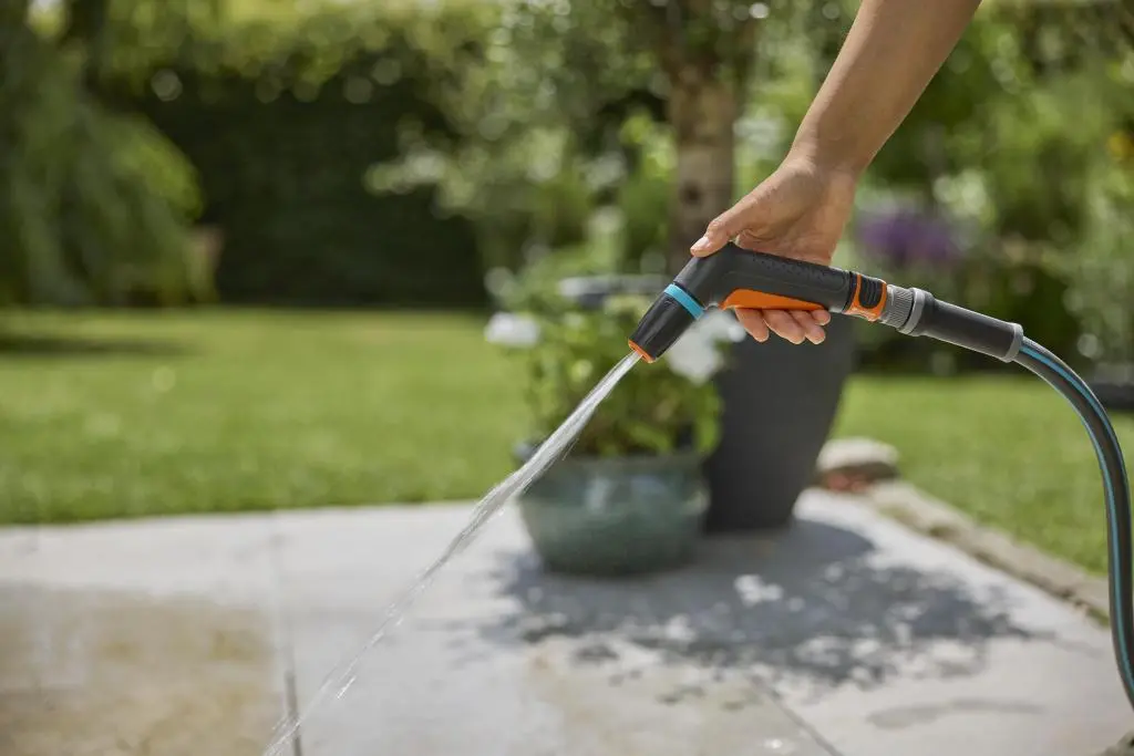Tip voor gebruik: Verlaag het watervolume wanneer je voorzichtig wilt bewateren en gebruik een krachtigere stand voor schoonmaakwerk rondom terras of tuinpad.