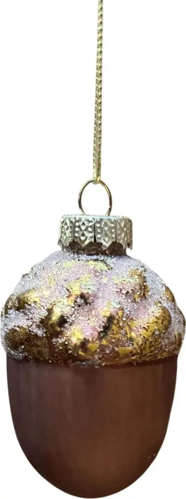 Dit mooie bruine, gouden glazen kerst ornament eikel met een hoogte van 8 cm mag natuurlijk niet in jouw kerstboom ontbreken. Combineer deze kerstbal in de kleur goud, bruin met andere kerstballen en kerstdecoratie uit het kerstthema voor een mooi versierde kerstboom die past bij de laatste kersttrends van 2025.