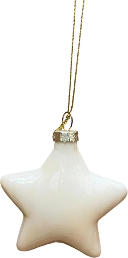Dit mooie witte glazen kerst ornament ster met een hoogte van 8 cm mag natuurlijk niet in jouw kerstboom ontbreken. Combineer deze kerstbal in de kleur wolwit met andere kerstballen en kerstdecoratie uit het kerstthema voor een mooi versierde kerstboom die past bij de laatste kersttrends van 2025.