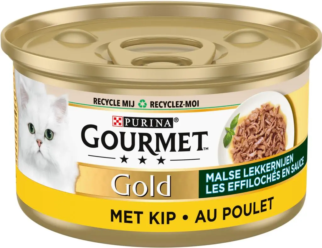 GOURMET Gold Malse Lekkernijen met Kip is een overheerlijk natvoer gemaakt met een smakelijk langzaam gegaard recept met sappige stukjes met kip om je kat mee te verwennen.