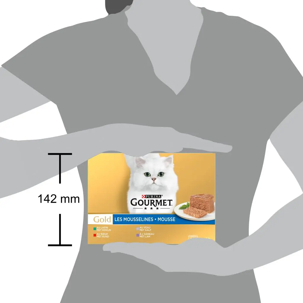 GOURMET™ Gold Mousse: zachte mousse met rund, kip, zalm en andere overheerlijke smaken, zorgvuldig bereid om uw kat te plezieren met een delicate en zachte sensatie. Alle GOURMET™ Gold recepten zijn gemaakt met kwalitatief hoogwaardige ingrediënten en bevatten geen toegevoegde kleurstoffen, geen toegevoegde kunstmatige smaakstoffen en geen toegevoegde kunstmatige conserveermiddelen.