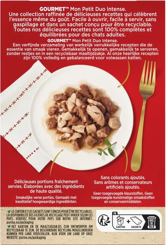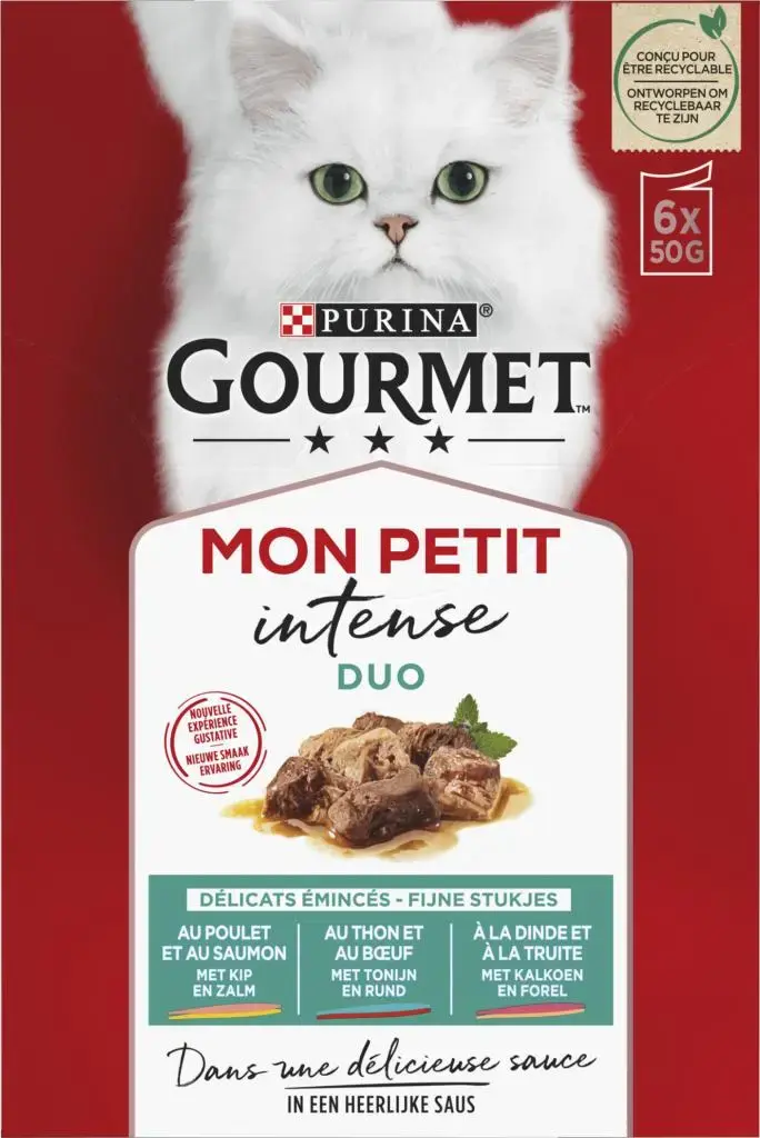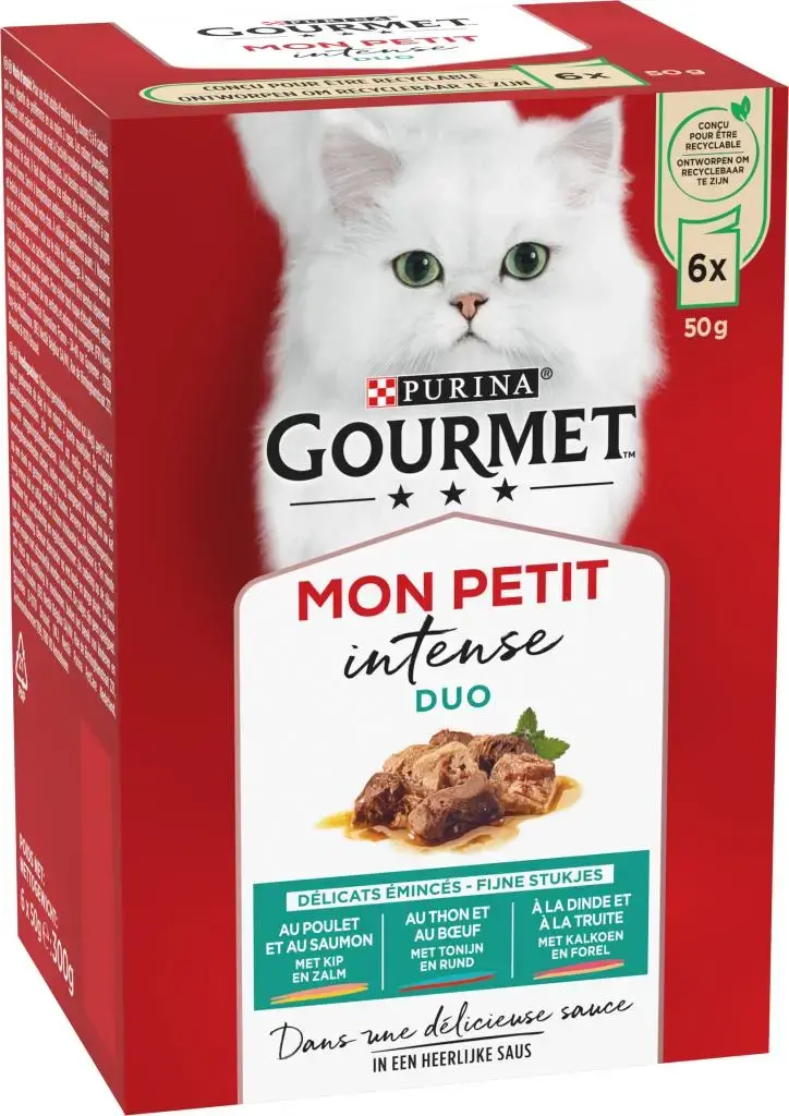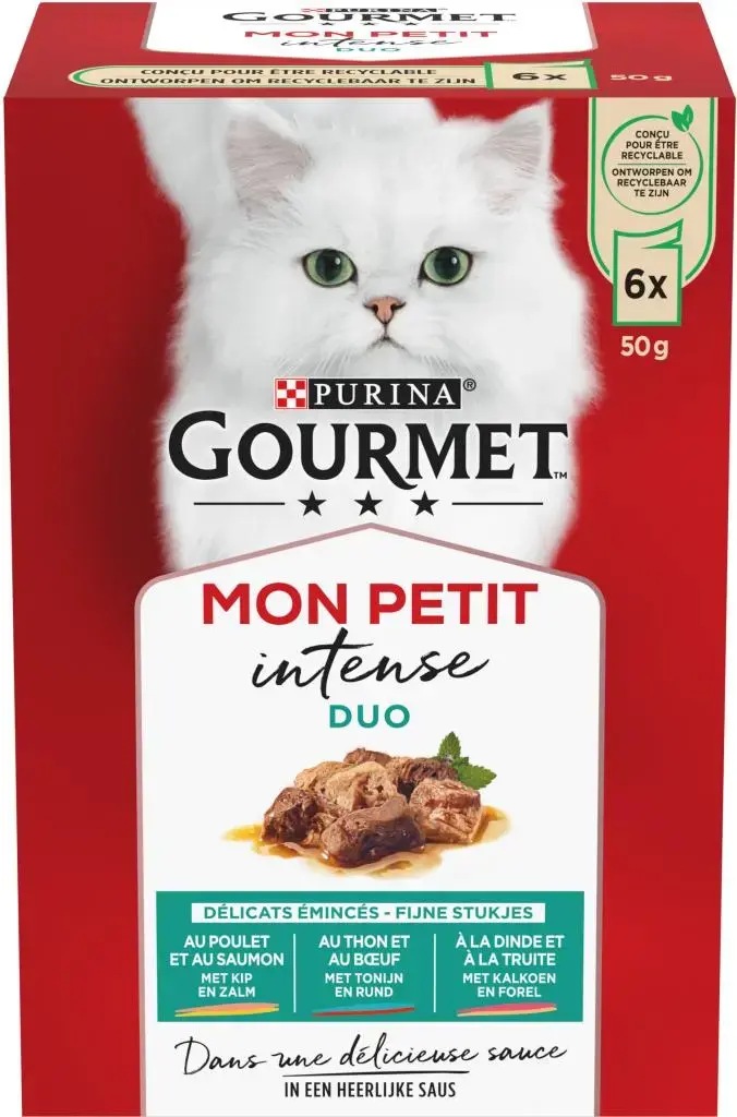 Met Gourmet Mon Petit Vis & Vlees 6 × 50 g voorzie je jouw kat elke dag van een luxueuze, gevarieerde en onweerstaanbare maaltijd.
