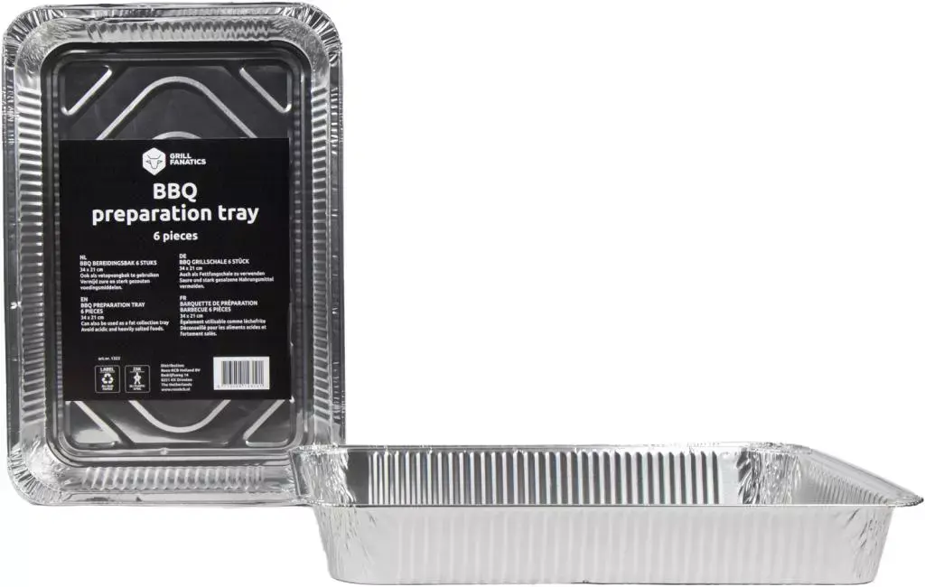 Maak barbecueën makkelijker en schoner met de Grill Fanatics vetopvangbak groot. Gemaakt van stevig aluminium — herbruikbaar en ideaal om vet en sappen veilig op te vangen.