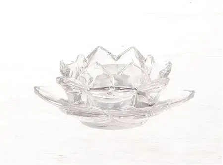 HBX natural living theelichthouder glas gysum flower 12x5cm transparant