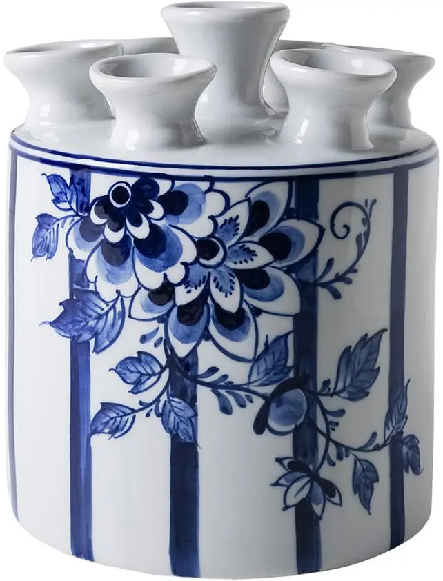 Heinen Delfts Blauw tulpenvaas keramiek fair florals 13x15cm delfts blauw