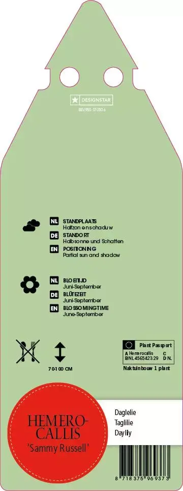 De vaste plant Hemerocallis Hybr. Sammy Russel (Daglelie) is een zomerbloeier. Plant de Hemerocallis Hybr. Sammy Russel op een plek met zon, halfschaduw en plaats maximaal 5 planten per vierkante meter. Deze plant heeft een maximale hoogte van 70 cm als volwassen plant. De bloemkleur is rood.