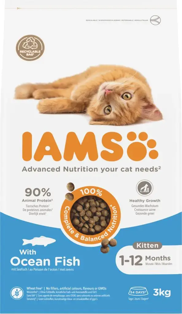 Voldoe aan de natuurlijke behoeften van uw kitten met heerlijke geavanceerde voeding met 90% dierlijk eiwit[[[van het totale eiwitgehalte]]]. Ons IAMS Advanced Nutrition droogvoer met zeevis voor kittens bevat essentiële mineralen en vitamine D om sterke botten en spieren te ondersteunen voor een gezonde groei van uw trouwe viervoeter.