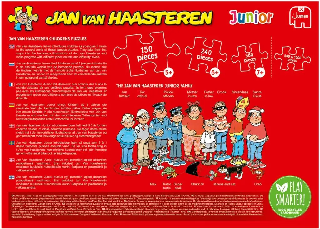 Jan van Haasteren Junior introduceert kinderen vanaf 5 jaar in de absurde wereld van de beroemde puzzels. Kinderen zetten hun eerste stappen in de humoristische illustraties van Jan van Haasteren en groeien mee.