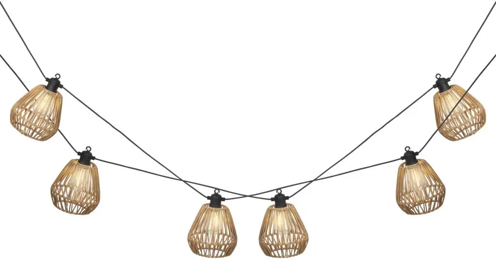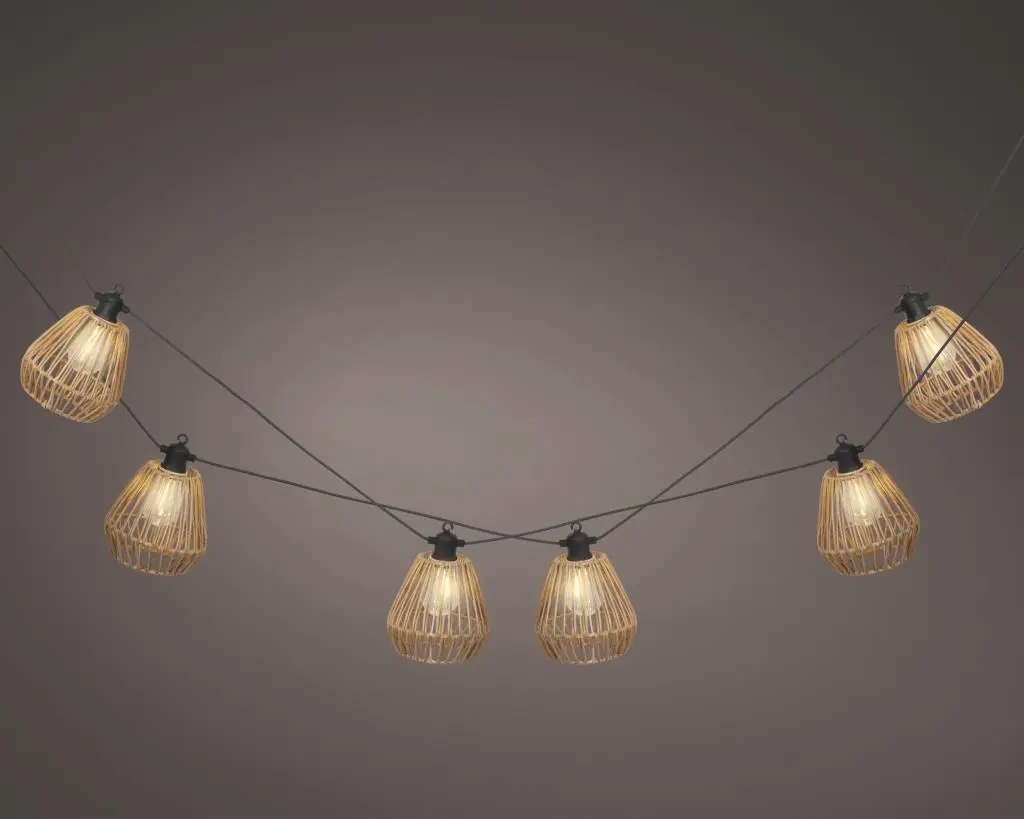 De partylight is eenvoudig op te hangen en weerbestendig, zodat je het hele seizoen kunt genieten van sfeervol licht. De combinatie van het natuurlijke design en het warme LED-licht geeft je buitenruimte een gezellige, uitnodigende uitstraling.