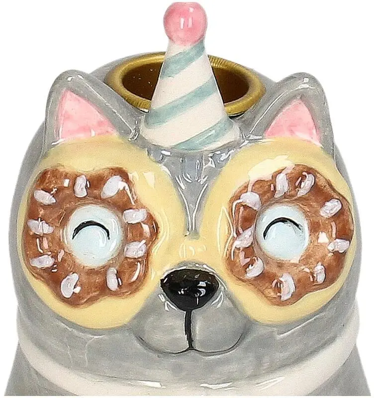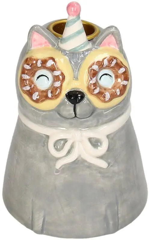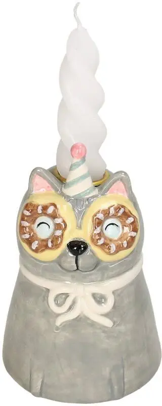 Kersten kandelaar aardewerk kat 8.5x13.5cm multi