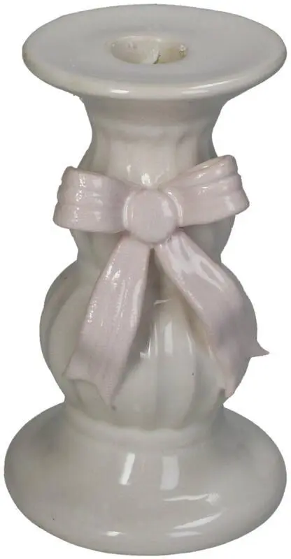 Kersten kandelaar aardewerk strik 9x14.5cm ivoor, roze