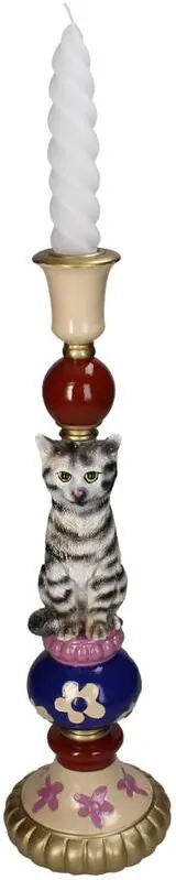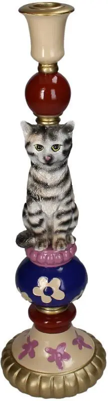 Kersten kandelaar polyresin kat 10.5x35cm multi