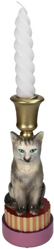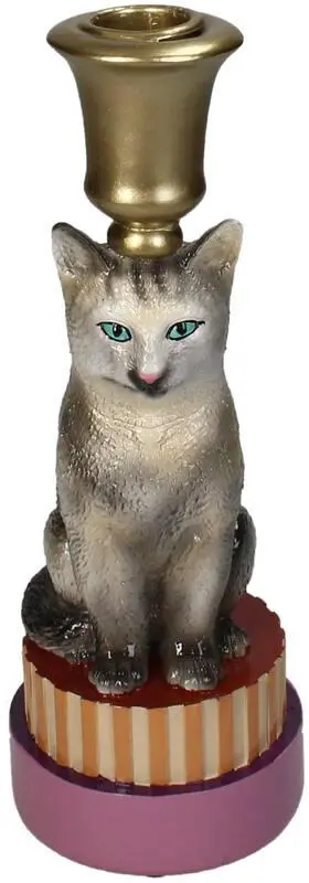 Kersten kandelaar polyresin kat 8.5x22cm multi