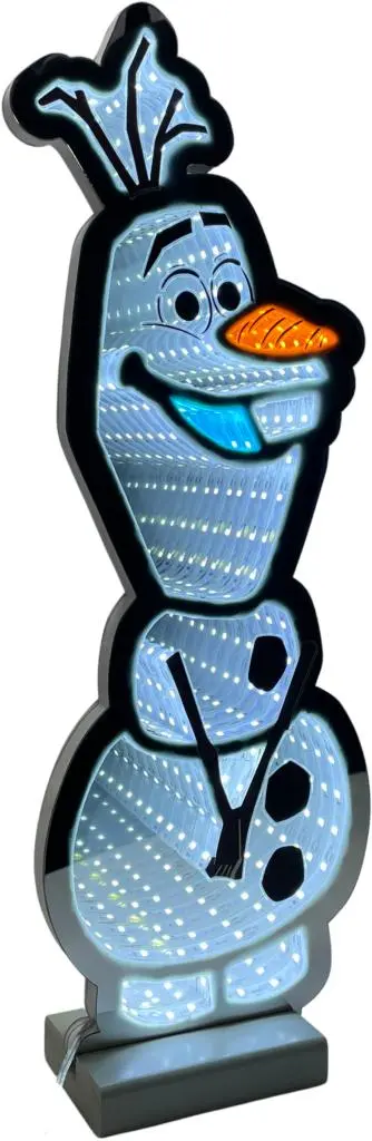 Laat je interieur stralen met deze vrolijke Infinity Light van Disney’s Olaf. De witte verlichting in combinatie met het eindeloze diepte-effect creëert een betoverende uitstraling, waardoor Olaf lijkt te schitteren in een magische winterwereld.
