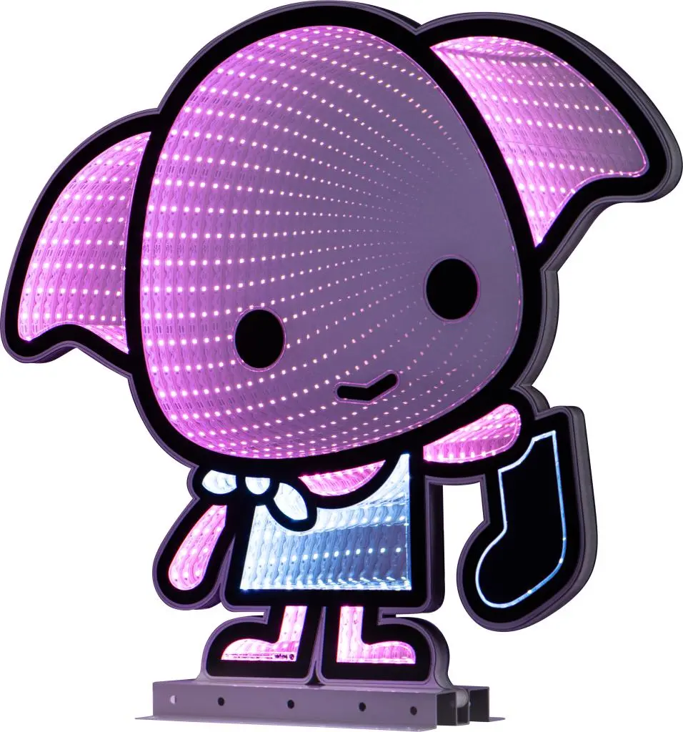 Breng een magische twist in je kerstdecoratie met deze bijzondere Infinity Light van Dobby uit de Harry Potter-reeks. Met zijn kerstmuts en ondeugende blik schittert Dobby in zachte roze tinten, omgeven door het betoverende diepte-effect van de infinity-technologie. Een unieke mix van kerstgezelligheid en tovenaarsmagie.