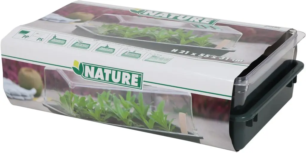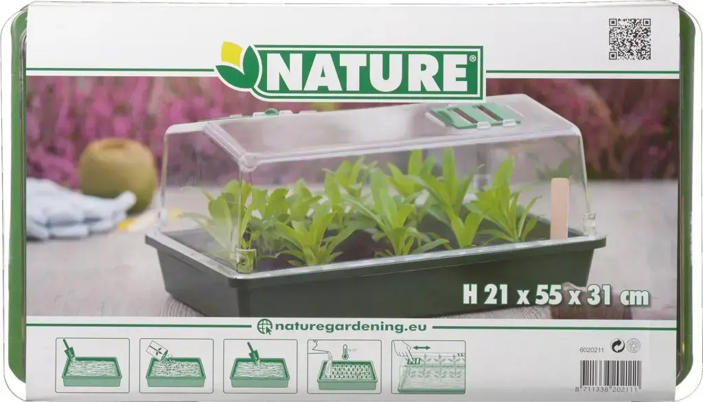 Kweek zaadjes en stek plantjes met deze Nature kweekbak van duurzame gerecycled geïnjecteerd polypropyleen (PP). De kweekbak heeft een transparante deksel van polystyreen (PS) met 2 regelbare ventilatieopeningen om de temperatuur en vochtigheidsgraad optimaal te regelen. De mini-kweekbak heeft een afmeting van H21x55x31cm. Eenvoudig schoon te maken voor hergebruik.