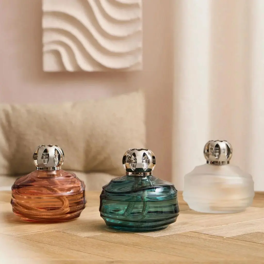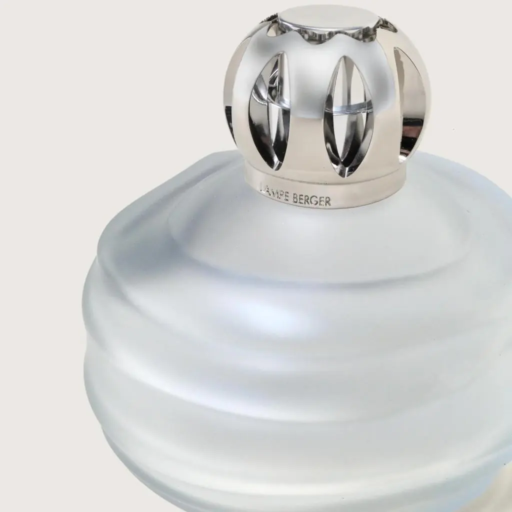 De Lampe Berger Echo Givrée, ontworpen door De Vog, belichaamt zuiverheid en verfijning met zijn golvende design. De vloeiende vormen zijn geïnspireerd door de beweging van water en creëren een gevoel van zachtheid en lichtheid, perfect voor een minimalistisch en eigentijds interieur. De ijsachtige afwerking laat het licht subtiel doorschemeren en voegt een tijdloze, moderne touch toe aan uw interieur. In combinatie met een zilverkleurige, bolvormige sierdop wordt deze lamp een decoratief pronkstuk, ideaal voor het creëren van een rustgevende en elegante sfeer. De Lampe Berger zuivert de lucht en parfumeert uw ruimte op een subtiele manier, waardoor ongewenste geuren worden geëlimineerd en uw favoriete parfum wordt verspreid. De Lampe Berger Echo Givrée is de perfecte metgezel om discreet luxe en welzijn in uw interieur te brengen.
