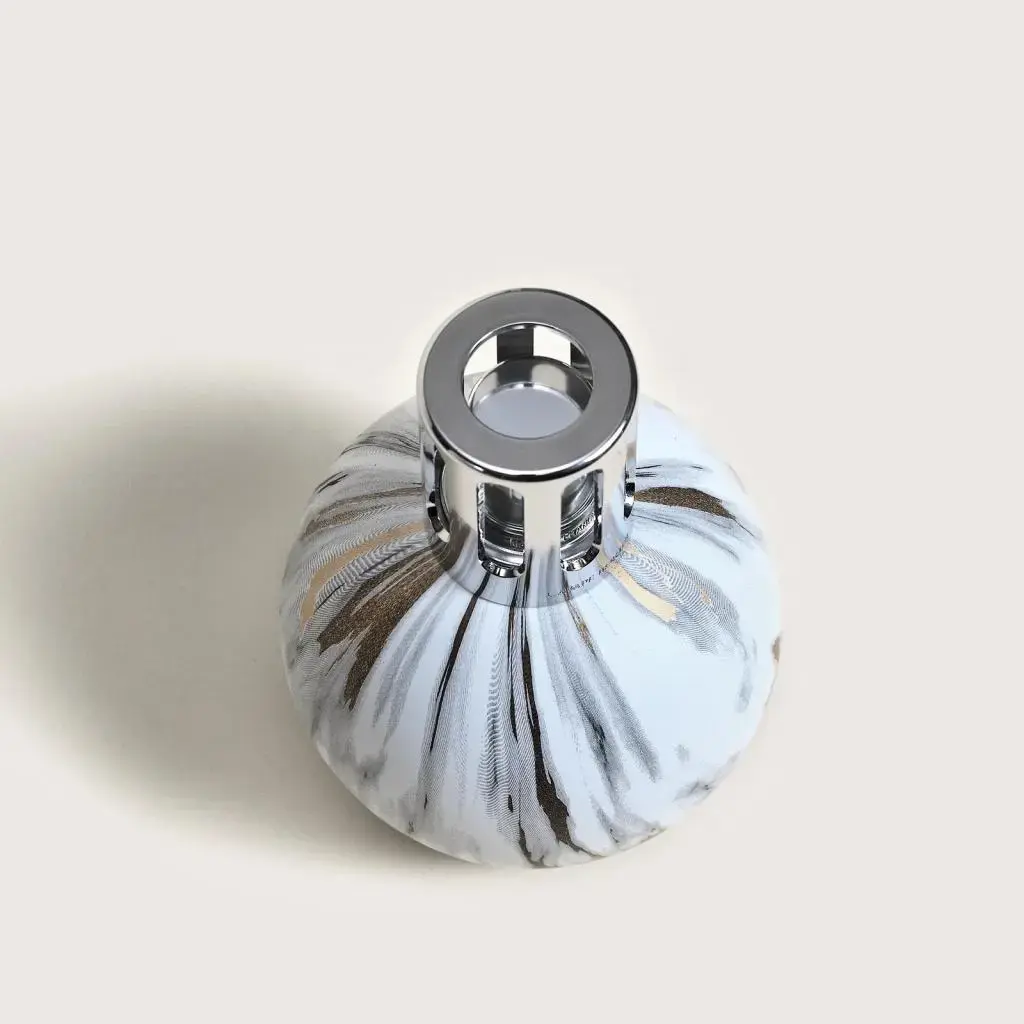 De Lampe Berger Marbrure Blanche is een buitengewoon stuk uit de Marbrure collectie, dat de traditie eert terwijl het een modern tintje toevoegt. Deze katalytische Lampe Berger valt op door haar unieke ontwerp en roept een gevoel van elegantie en verfijning op. Haar bolvorm, kenmerkend voor Maison Berger Paris, wordt geaccentueerd met een trendy decoratie die naadloos aansluit bij de huidige interieurtrends. De warme stempeling geeft een nieuwe draai aan klassieke vormen, waardoor deze Lampe Berger een unieke uitstraling krijgt. De witte kleur van deze Lampe Berger voegt een subtiele elegantie toe aan uw interieur terwijl het zuiverheid en sereniteit symboliseert. Het is het perfecte accessoire voor diegenen die hun huis willen omtoveren tot een toevluchtsoord van rust. Voor de optimale parfumervaring nodigen we u uit om onze navullingen te ontdekken.