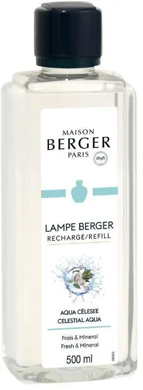 Lampe Berger huisparfum Aqua Céleste 500ml onthult een parfum geïnspireerd door de natuur en levendig water. Heldere sinaasappel, viooltjesblad en mariene accenten zorgen voor een kristalheldere opening die doet denken aan de frisheid van een ochtend aan het water. Het hart straalt met lelietje-van-dalen, fluweelzachte roos en aromatische salie voor een delicate, rustgevende bloemenharmonie. In de basis komen minerale tonen van grijze amber samen met eikenmos en patchouli, die een houtachtige diepte geven. Deze navulling voor Lampe Berger zuivert en parfumeert de lucht en creëert een evenwichtige sfeer tussen levendige frisheid en rustgevende houttonen. De inhoud van 500 ml staat garant voor tot 20 uur verspreiding en 80 uur parfumbeleving. Herlaad uw parfumervaring op uw eigen tempo en geniet van een zuiver en subtiel geparfumeerd interieur.