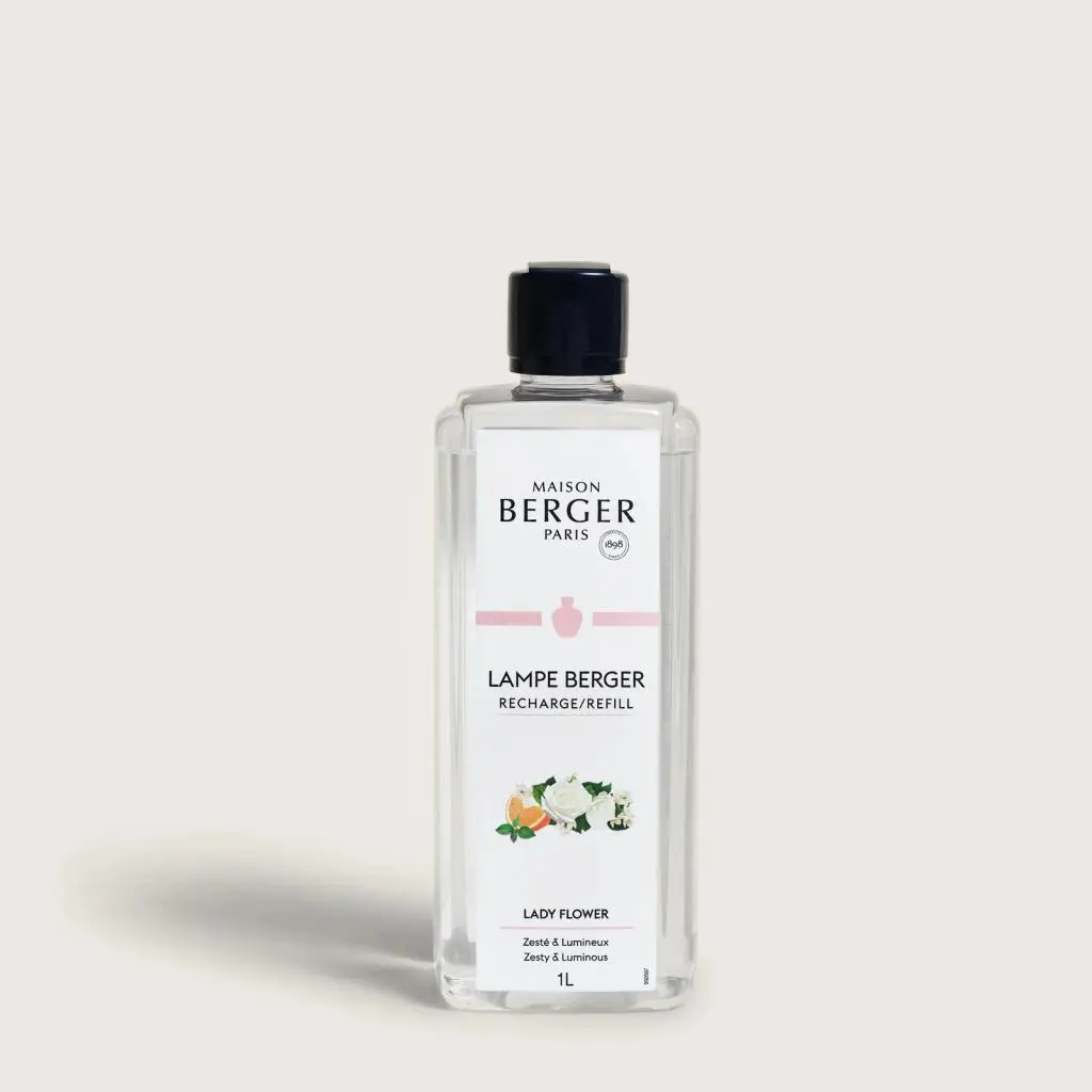 De Lampe Berger huisparfum Lady Flower 1 liter verspreidt een elegante bloemenparfum in uw interieur. De sprankelende topnoten van bergamot, mandarijn en grapefruit prikkelen de zintuigen. In het hart ontvouwt zich een betoverend boeket van jasmijn, mimosa en roos, terwijl de basisnoten van amber, edele houtsoorten en patchouli zorgen voor een verfijnde en warme finishing touch. Met een inhoud van 1 liter garandeert deze navulling een langdurige en continue parfumervaring.