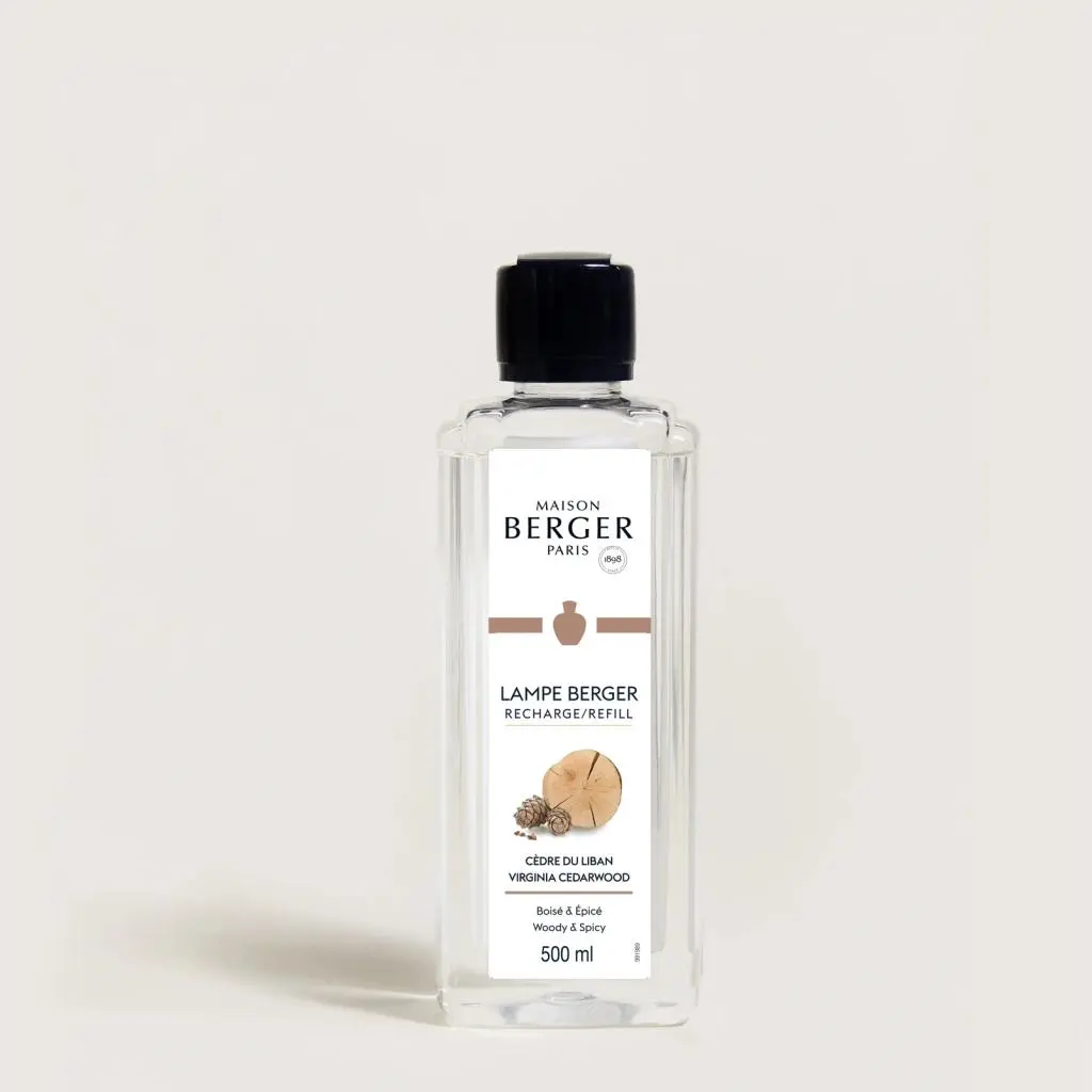 Het Lampe Berger Huisparfum 500ml Cèdre du Liban voor in uw Lampe Berger, onderdeel van de oriëntaalse geurfamilie van Maison Berger Paris, is een levendig en houtachtig parfum dat uw huiskamer omtovert tot een bloeiend zomerbos.. Het vertrek van Cèdre du Liban is levendig en natuurlijk. Met houtachtige noten van ceder en sandel, aangevuld met de frisheid van citrusvruchten en een hart van kokos en kruidnagel, steelt dit heldere, frisse en natuurlijke huisparfum dat door de Lampe Berger luchtreiniger verspreidt wordt, de harten van iedere Lampe Berger liefhebber! De huisparfums van Maison Berger Paris worden stuk voor stuk gecreëerd in het Zuid-Franse Grasse. Omringt door de beste Franse parfumeurs worden er verfijnde geursferen ontwikkelt die tegelijkertijd slechts stoffen in de lucht verspreiden die perfect beheerst en gecontroleerd worden. Een belangrijke garantie voor degenen die de kwaliteit van de lucht die zij inademen van essentieel belang is.