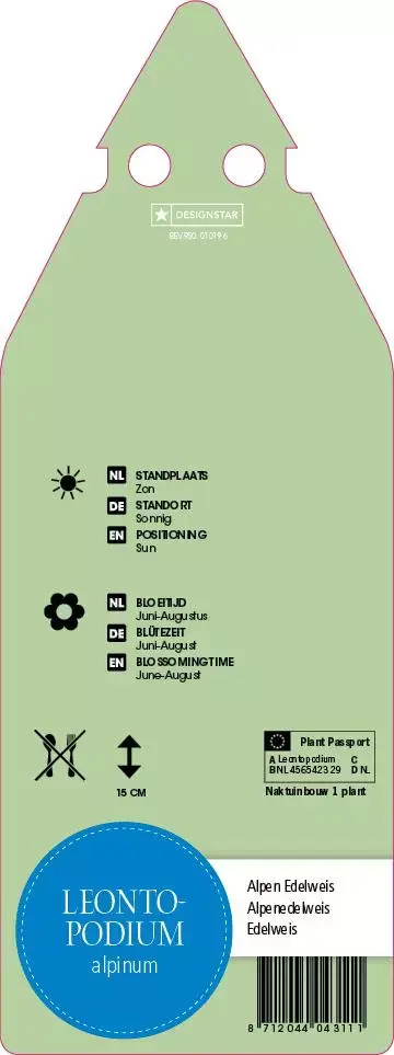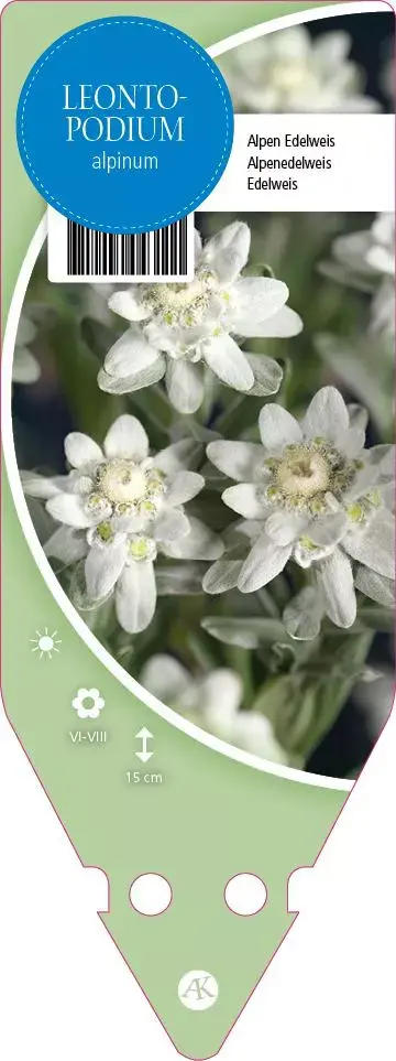 De vaste plant Leontopodium Alpinum (Alpen edelweiss) is een rotsplant. Plant de Leontopodium Alpinum op een plek met zon en plaats maximaal 7 planten per vierkante meter. Deze plant heeft een maximale hoogte van 15 cm als volwassen plant. De bloemkleur is wit.