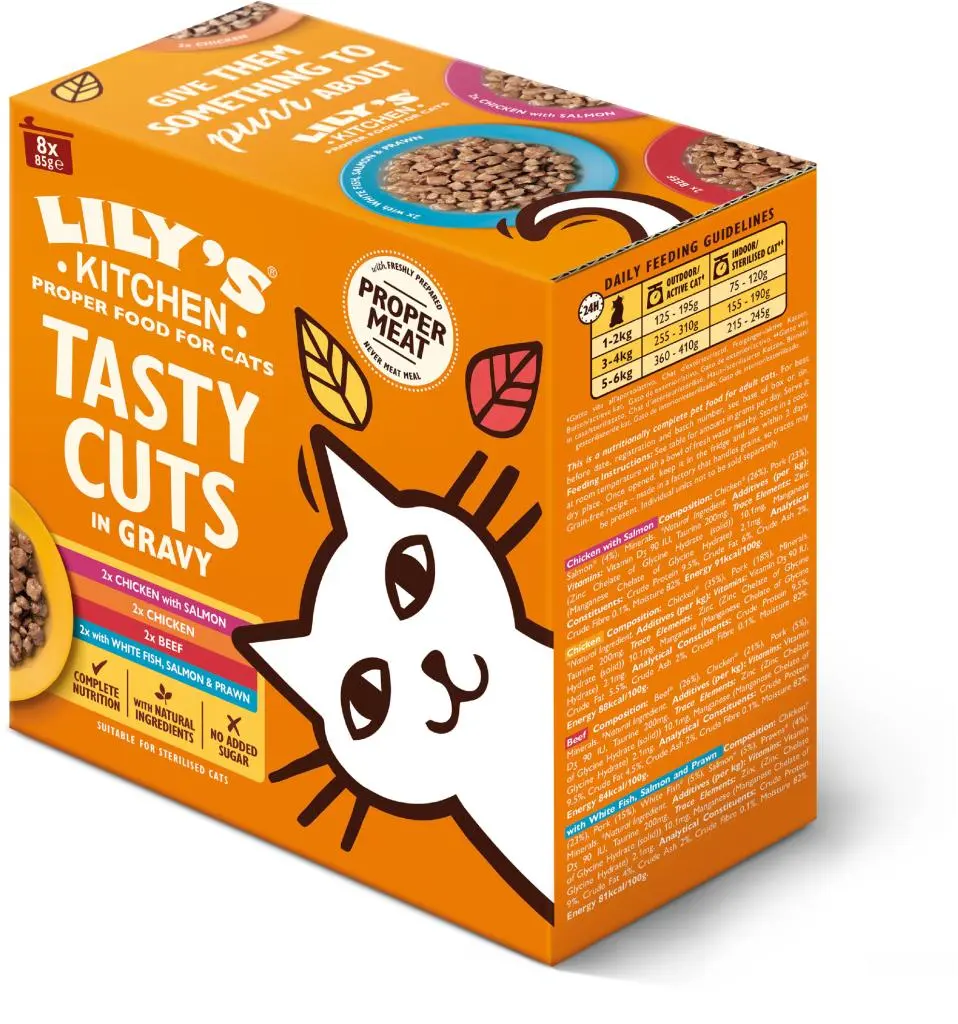 Lily's Kitchen - Lily's Kitchen Kipstukjes in Saus Kattenvoer 85gr Wij zijn Lily's Kitchen, een merk vernoemd naar de geliefde borderterriër Lily. Geïnspireerd door haar avontuurlijke karakter, creëren we hoogwaardig voer voor honden en katten. Onze voeding bevat vers bereid vlees en natuurlijk voedzame ingrediënten. We geloven dat alle honden en katten echt goed voer verdienen en streven naar een positieve impact op de planeet. Ontdek de voedzame keuze van Lily's Kitchen. We kozen voor de grove structuur waar katten zo dol op zijn voor onze heerlijke stukjes in saus-maaltijden, met echt vlees, orgaanvlees en natuurlijke ingrediënten. Maak kennis met ons natvoer – misschien een unieke kans om je kat naar zijn bak te zien rennen. Het is een volledig kattenvoer en bevat dus alles wat je kat nodig heeft. En nee, dat geldt niet voor alle merken kattenvoer! En het is een volledig kattenvoer, wat betekent dat het alle positieve voedingsstoffen bevat die jouw kat nodig heeft – en dat geldt echt niet voor alle merken kattenvoer.