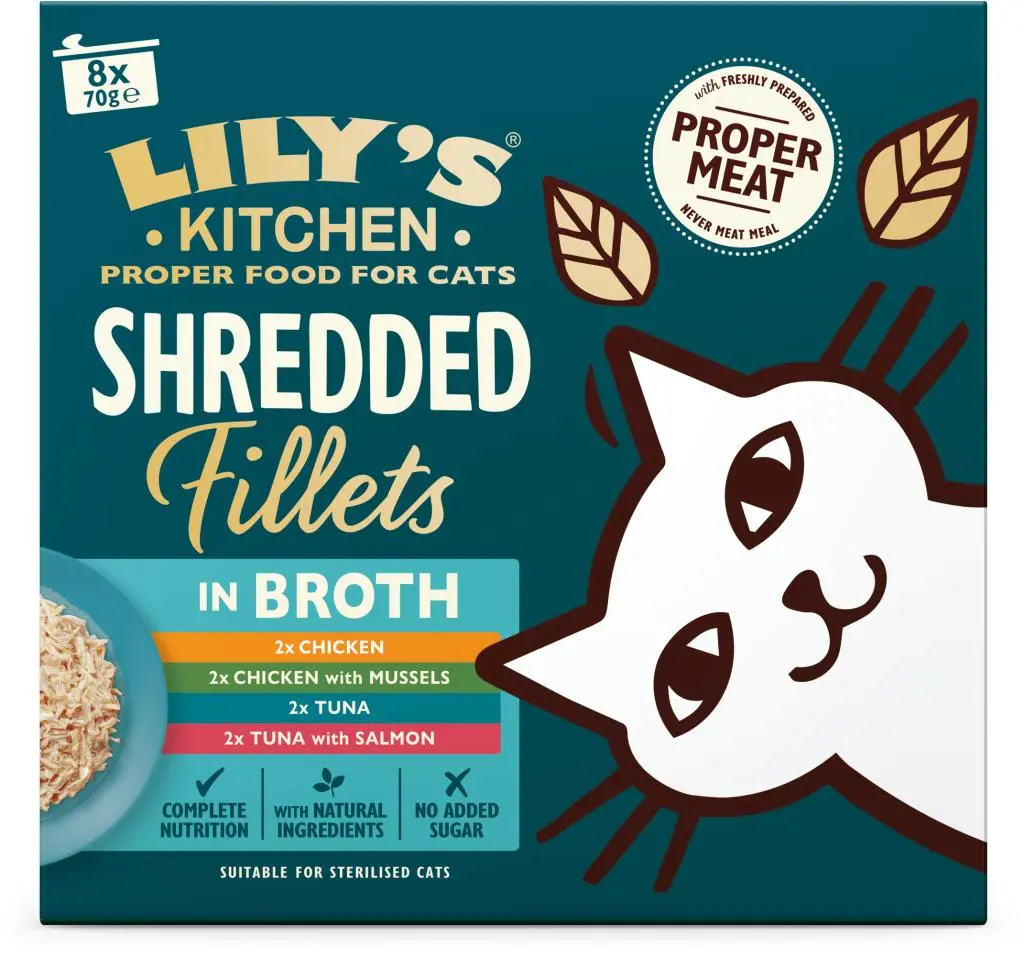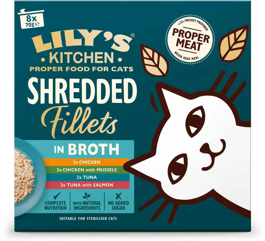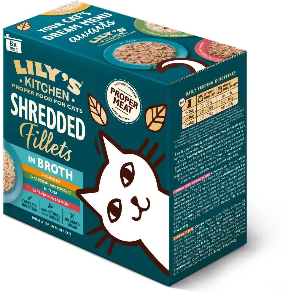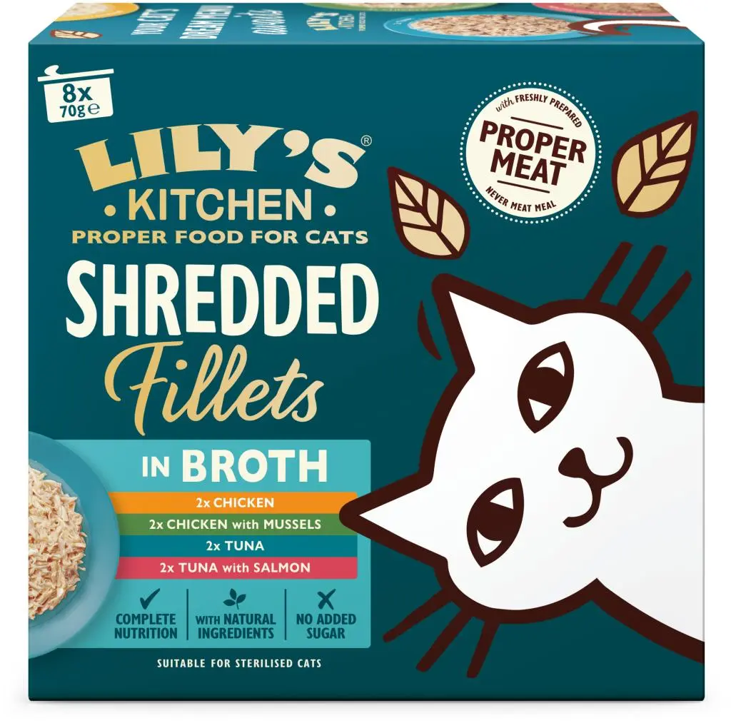 Lily's Kitchen - Malse Reepjes Multipack Kat 70gr Wij zijn Lily's Kitchen, een merk vernoemd naar de geliefde borderterriër Lily. Geïnspireerd door haar avontuurlijke karakter, creëren we hoogwaardig voer voor honden en katten. Onze voeding bevat vers bereid vlees en natuurlijk voedzame ingrediënten. We geloven dat alle honden en katten echt goed voer verdienen en streven naar een positieve impact op de planeet. Ontdek de voedzame keuze van Lily's Kitchen. Maak kennis met onze reepjes met kip gedrenkt in een heerlijke bouillon, in de smaken: met mosselen, ham of onze visvariant tonijn met zalm. Het mooie is dat deze natvoer producten alleen natuurlijke ingrediënten bevatten en dat er geen granen of suikers aan worden toegevoegd. Het is ook een volledig diervoeder, wat betekent dat het alle voedingsstoffen bevat die voor katten essentieel zijn. En nee, dat geldt niet voor alle merken kattenvoer! Natuurlijke ingrediëntenVegan recept - plantaardige eiwittenGraanvrij receptVoor volwassen honden vanaf 6 maanden