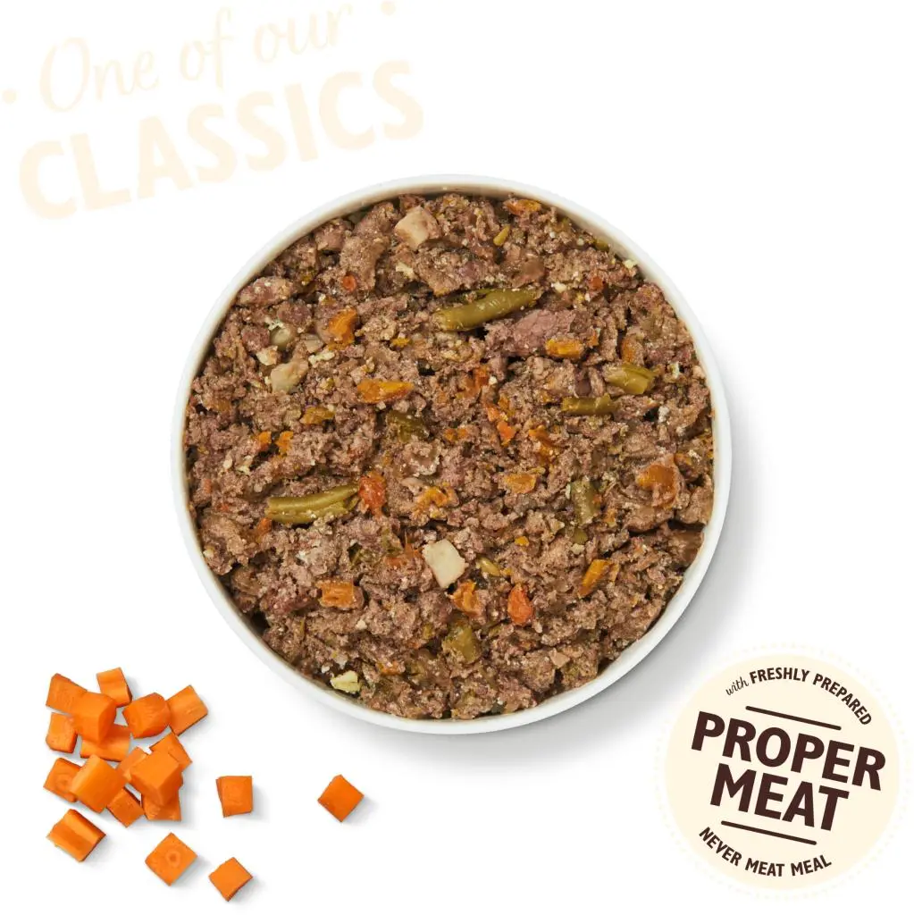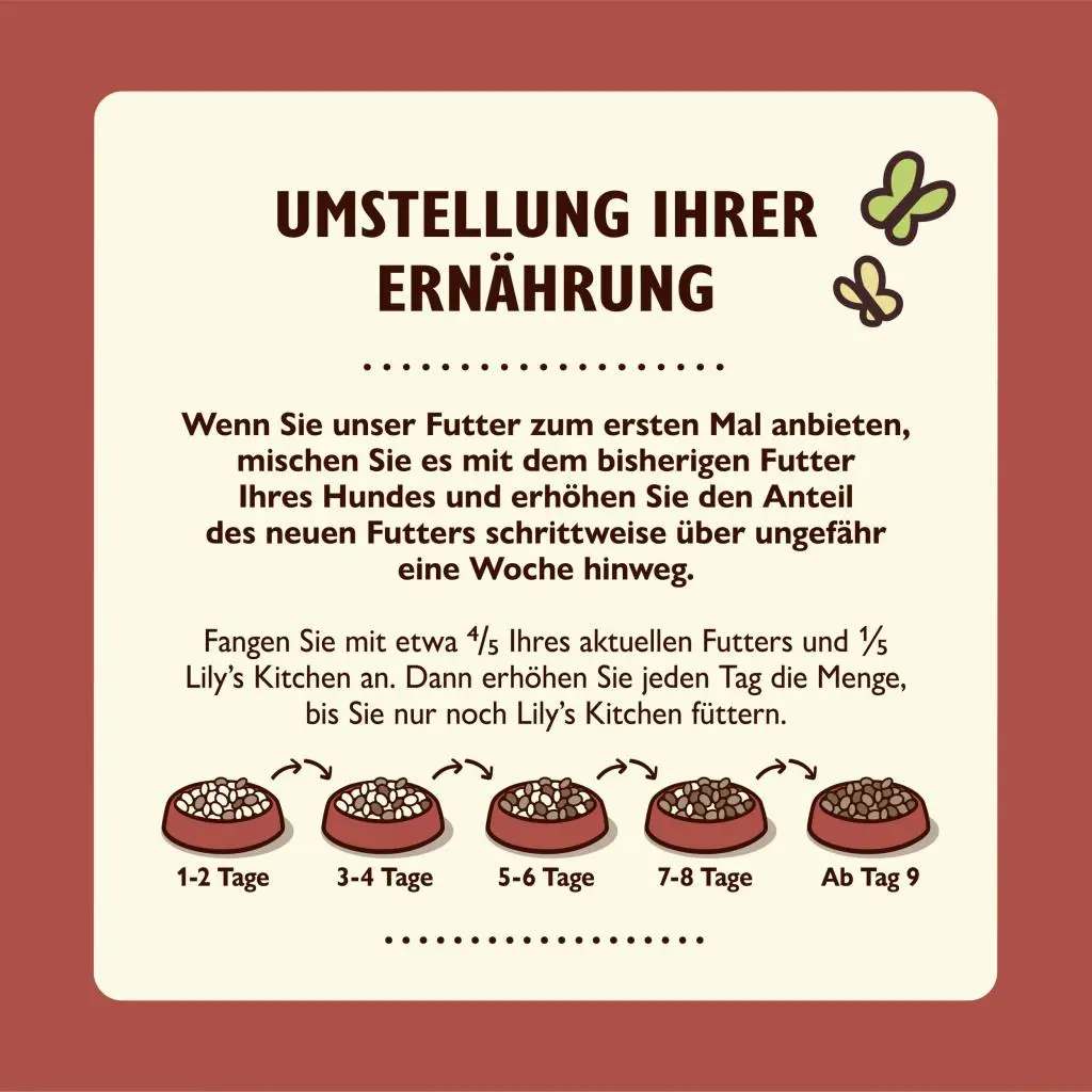 Lily's Kitchen - Natvoer met Rund, Wortel en Aardappe Hondenvoerl 400gr Wij zijn Lily's Kitchen, een merk vernoemd naar de geliefde borderterriër Lily. Geïnspireerd door haar avontuurlijke karakter, creëren we hoogwaardig voer voor honden en katten. Onze voeding bevat vers bereid vlees en natuurlijk voedzame ingrediënten. We geloven dat alle honden en katten echt goed voer verdienen en streven naar een positieve impact op de planeet. Ontdek de voedzame keuze van Lily's Kitchen. Dit complete natvoer voor honden is bereid met vers rundvlees en andere smakelijke ingrediënten. Een graanvrije voeding, boordevol natuurlijke, voedzame ingrediënten. We hebben er aardappelen, wortels, broccoli, sperziebonen en appels in verwerkt. Daarnaast hebben we ook kruiden, plus alle essentiële vitaminen en mineralen die je hond voor z'n gezondheid nodig heeft, toegevoegd. Vol met echt, hoogwaardig, vers bereid vlees en groenten. Deze smakelijke voeding is volledig vrij van vleesmeel en toegevoegde suikers. Goeie zaak toch? Onthoud: het gaat om hondenvoer. Je weet wel: voor honden. Niet voor mensen. Sorry.