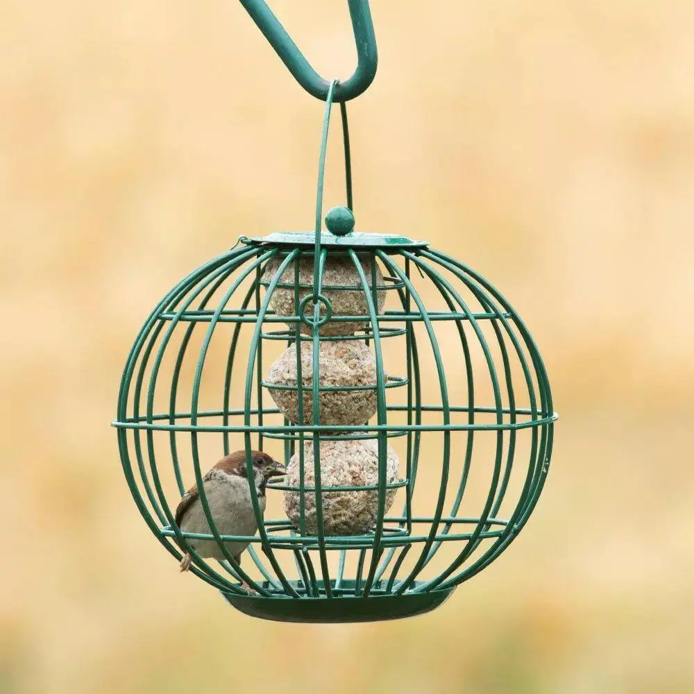 Deze London vetbollenhouder is een vetbolhouder en beschermkooi in één. Zijn alleen kleine vogels welkom bij uw vetbollen? Dan biedt deze London Vetbollenhouder uitkomst. Door de geïntegreerde beschermkooi kunnen grote vogels of andere ongewenste dieren er niet bij.
