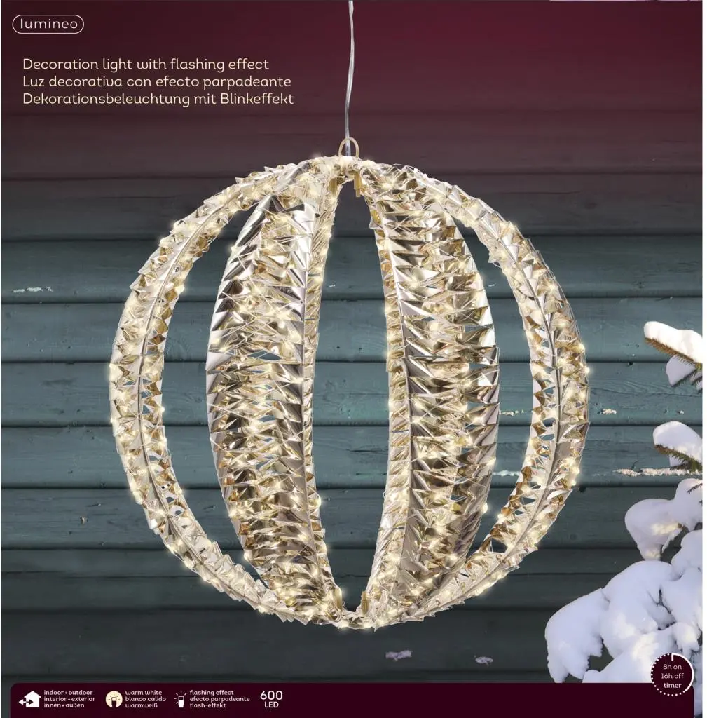 Lumineo Micro LED bal pet flashing effect buiten 40 cm 600 led warm wit