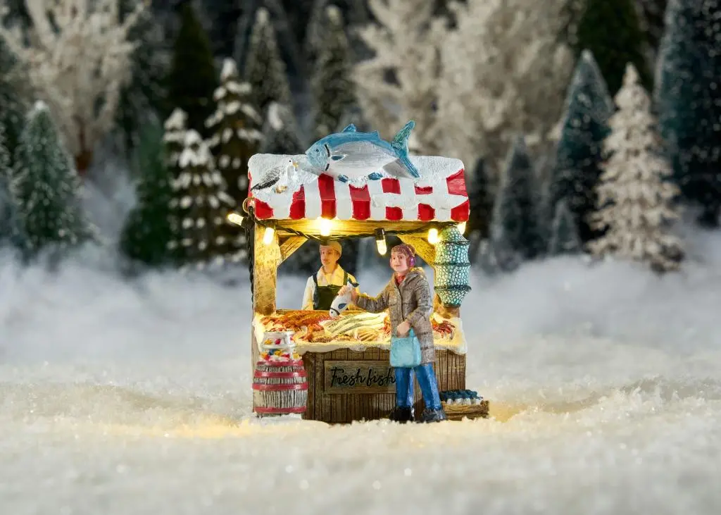 Ook kan je van oktober t/m december in ons tuincentrum in Amsterdam de Luville Fish market battery operated bekijken in het grootste kerstdorp van Nederland.