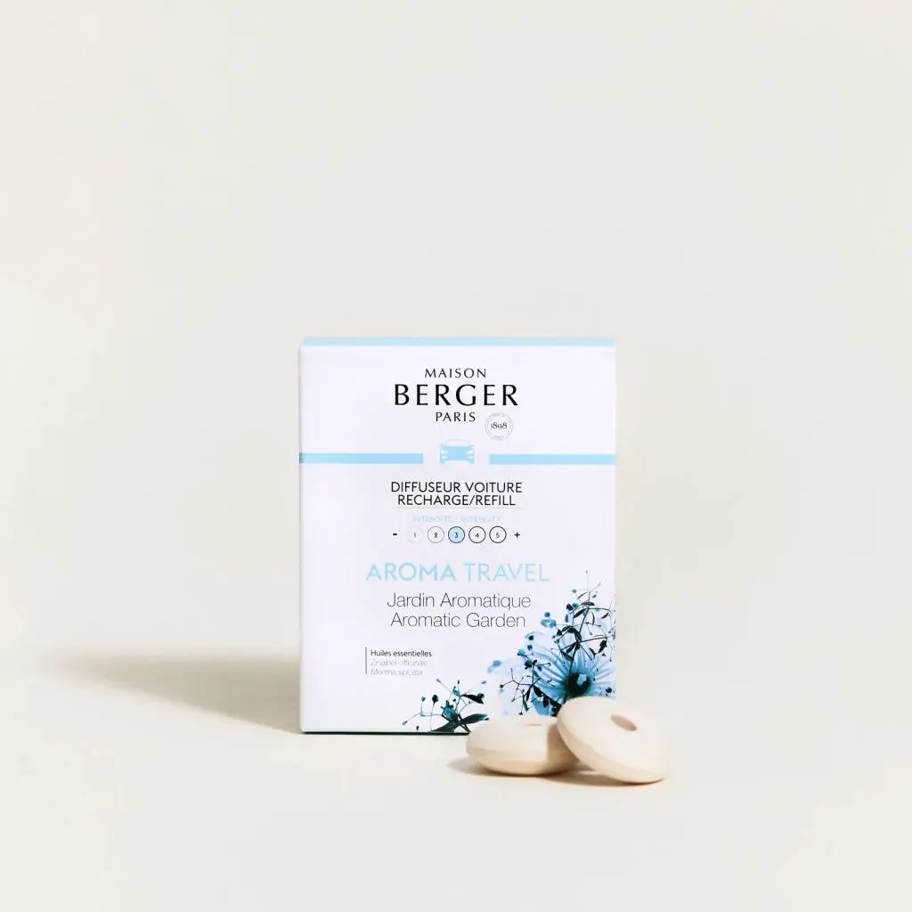 Aromatic garden: Het Parfum Aroma Travel Jardin Aromatique betovert u dankzij de krachtige en kruidige geur van Gember. Aan de ene kant de frisse en geruststellende mentholgeur en aan de andere kant een lieflijk amberachtig facet. Dit alles, verrijkt met essentiële oliën die misselijkheid bestrijden, zodat wagenziekte nog slechts een vage herinnering is!