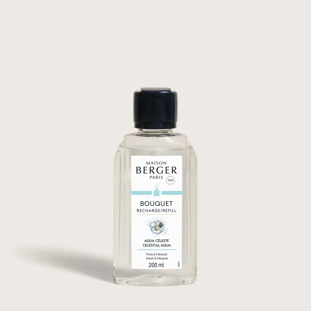 Navulling parfumsticks 200ml Aqua Céleste brengt een plantaardige en mariene frisheid in uw interieur. De topnoten combineren sprankelende sinaasappel, viooltjesblad en zeebries, wat doet denken aan een verkwikkende wind aan het water. Het hart van het parfum onthult lelietje-van-dalen, symbool van zuiverheid, fluweelzachte roos en aromatische salie, voor een delicate en heldere bloemige harmonie. De basisnoten, bestaande uit grijze amber, eikenmos en patchouli, geven een houtachtige en minerale diepte en omhullen de ruimte met natuurlijke sereniteit. Deze navulling voor parfumsticks verfrist de parfumbeleving van uw sticks en zorgt voor een continue verspreiding gedurende ongeveer vier weken. Ideaal voor liefhebbers van parfumsticks, biedt het een evenwichtige en rustgevende zintuiglijke ervaring.