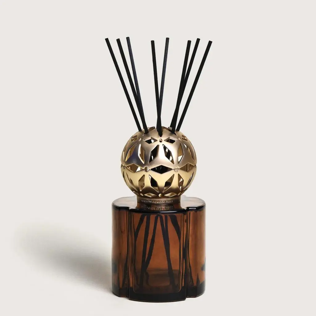 De Parfumsticks Pomelis Chocolat, ontworpen door Sylvie de France, maken deel uit van de Pomelis collectie, geïnspireerd op de Pomander als symbool van gezelligheid. De chocoladekleur voegt een stijlvol accent toe aan elke ruimte. Huisparfum Splendeur Vanillée opent met sinaasappel en mandarijn, verfijnd met kardemom. Het hart onthult zwarte peper, rumakkoord en cacaoboon voor een feestelijke sfeer. De basisnoten van bourbonvanille, sandelhout en patchoeli zorgen voor een zachte, houtachtige afronding. Dankzij 200 ml huisparfum en de sticks verspreidt deze set ongeveer vier weken lang een elegant parfum. Een decoratief object dat u cadeau kunt doen of zelf tentoonstellen, en dat uw huis een bijzondere sfeer geeft. Maison Berger Paris biedt bijpassende navullingen om de parfumbeleving te verlengen.