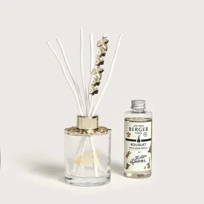 Een ode aan de aard van de vrouw.. De Premium Parfumverspreider Lolita Lempicka Transparente met 200ml huisparfum Lolita Lempicka van Maison Berger Paris is het elegante vervolg van een gevoelige en zintuiglijke reis die 20 jaar geleden gestart werd door ontwerpster Lolita Lempicka.. De Premium Parfumverspreider Lolita Lempicka Transparente is een viering: die van de zeer Parijse elegantie en van de Franse uitmuntendheid waarbij alles doet denken aan de signatuur van Lolita Lempicka en haar meest bekende creatie voor het lichaam: Mon Premier Parfum. De 100% natuurlijke wilgenhouten sticks van deze Parfumverspreider verspreiden het 200ml huisparfum Lolita Lempicka: de exacte kopie van het iconische lichaamsparfum met noten van zoethout, tonkaboon, viooltjes en de beroemde sensuele nektar: Cistus Labdanum. Geniet van het huisparfum Lolita Lempicka dat op intense of subtiele wijze door deze Parfumverspreider wordt verspreid en uw interieur een gourmand, vrouwelijk en sensueel accent geeft.. Navulbaar met de 200ml navullingen van Maison Berger Paris voor de Parfumverspreider.
