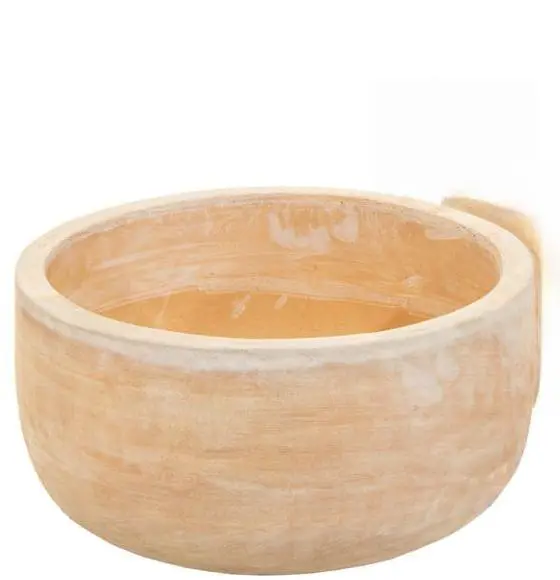 Lage terracotta schaalpot met natuurlijke whitewash afwerking
