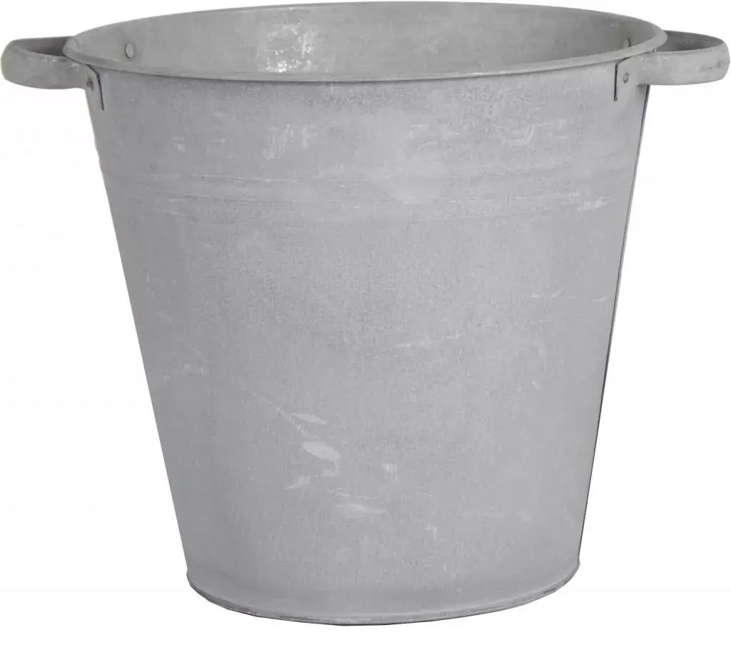 Deze conisch gevormde bloempot van Mega Collections heeft een stoere old look-uitstraling en is uitgevoerd met stevige handgrepen. Het robuuste ontwerp in verzinkt staal past perfect in een landelijke, industriële of vintage buitenruimte of interieur. Met een diameter van 30 cm en een hoogte van 28 cm biedt deze pot voldoende ruimte voor het planten van kruiden, bloemen of decoratieve beplanting.