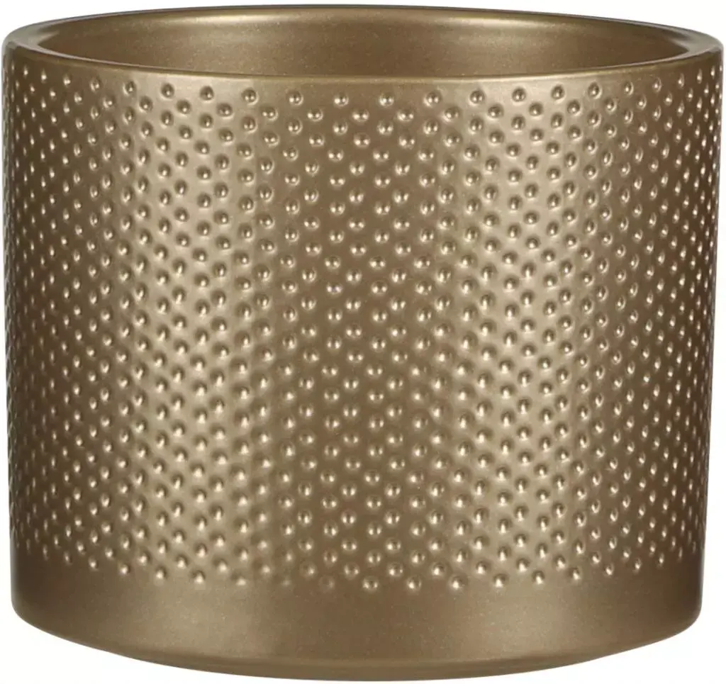 Een stoere basic die wel tegen een stootje kan, dat is de Era bloempot van Mica Decorations. Door de gouden finish met gestippeld reliëf patroon is dit echter wel een speciale basic. Simpel en strak, maar toch bijzonder! De ronde pot is gemaakt van stevig keramiek en hierdoor erg weerbaar. Door de rechte vorm past elke plant er perfect in. De Era serie heeft naast deze bloempot nog vele andere potten in verschillende kleuren, maten en afwerkingen. Deze pot is H13 x Ø15 cm en heef een gouden kleur met reliëf patroon.