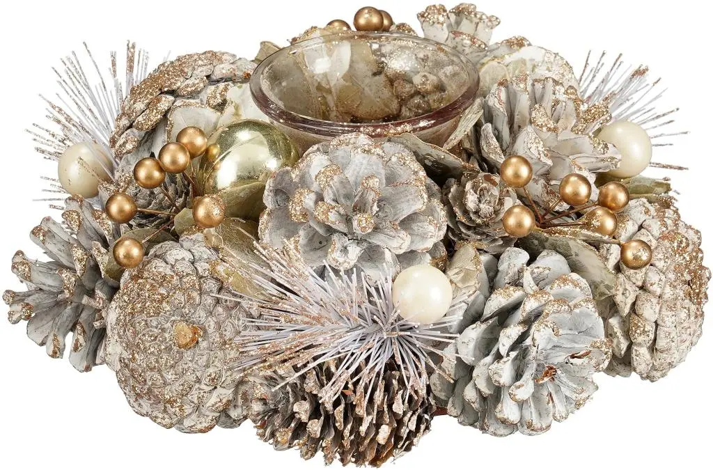 Mica Decorations theelichthouder dennenappel hanley 19x9cm wit