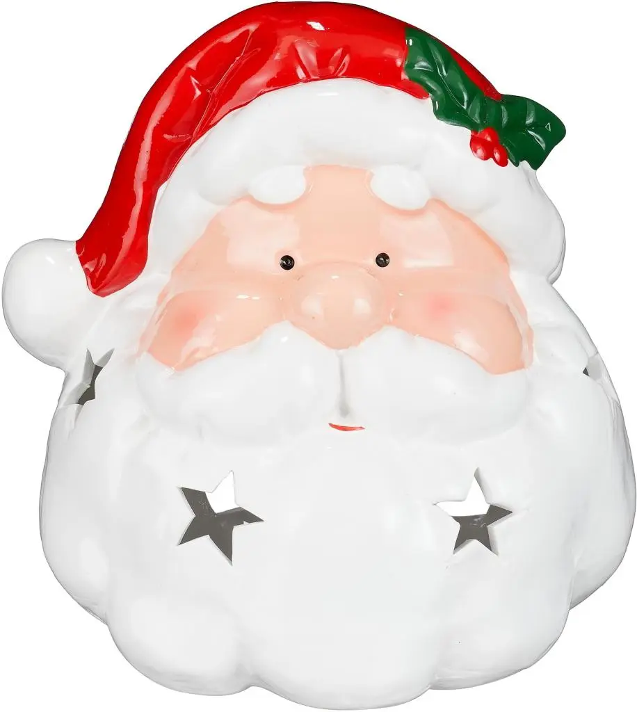Mica Decorations theelichthouder keramiek kerstman 15x11.5x15cm rood